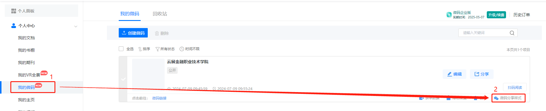 (1)點擊【我的微碼】,選擇需要設(shè)置的微碼,點擊【微碼分享樣式】。