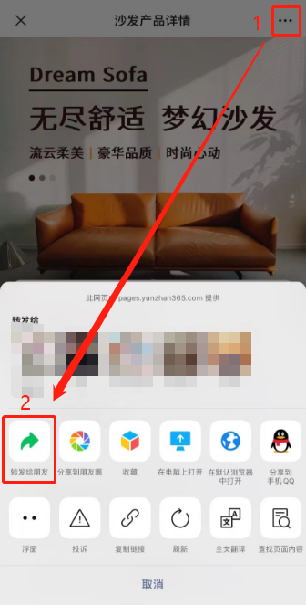 (2)打開微信掃一掃,掃描二維碼打開微碼,點擊右上角三個點【…】,點擊【轉(zhuǎn)發(fā)給朋友】,即可將微碼以標(biāo)題、描述、縮略圖的形式分享給微信好友。