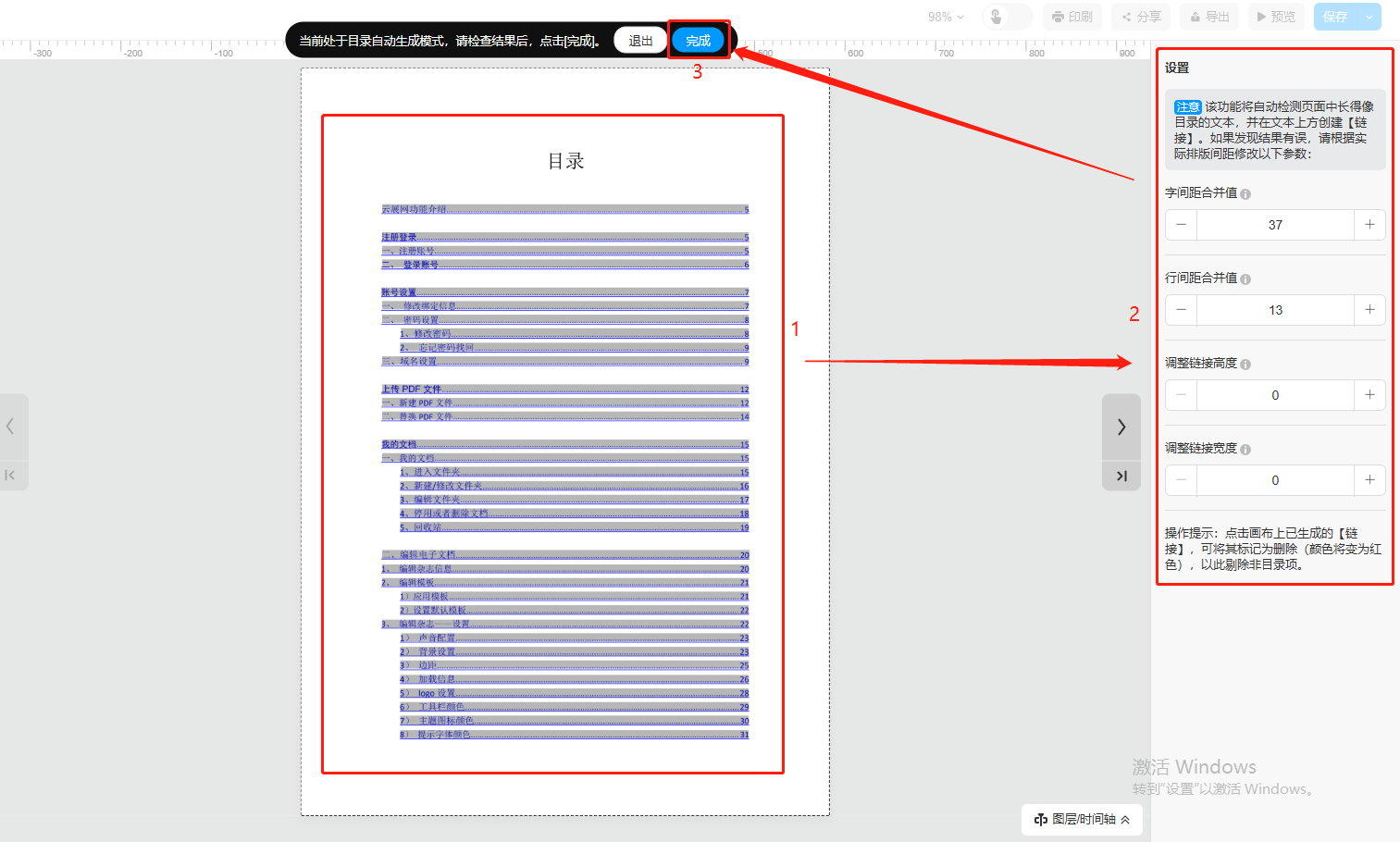 2.目前只能識別上傳的PDF結(jié)尾帶阿拉伯?dāng)?shù)字的句子作為目錄,并自動(dòng)添加頁面跳轉(zhuǎn)超鏈接,阿拉伯?dāng)?shù)字為點(diǎn)擊跳轉(zhuǎn)后的頁碼,頁碼以電子書的頁碼為準(zhǔn)(封面開始為第一頁)。