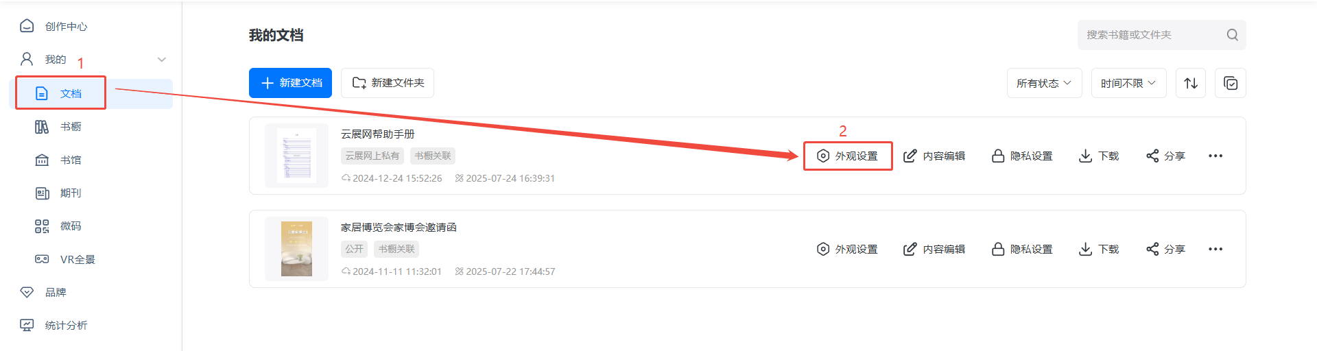 點(diǎn)擊【文檔】,點(diǎn)擊對(duì)應(yīng)書本的【外觀設(shè)置】。