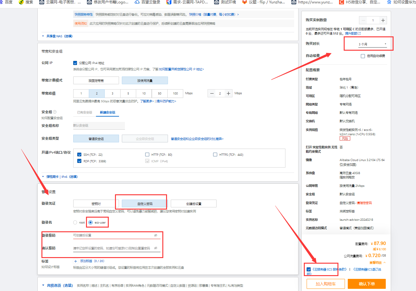 (2)購買云服務(wù)器,至少買三個(gè)月的,因?yàn)橹皇怯脕砩暾?qǐng)備案服務(wù)碼和綁定用的,所以買最便宜的就行。