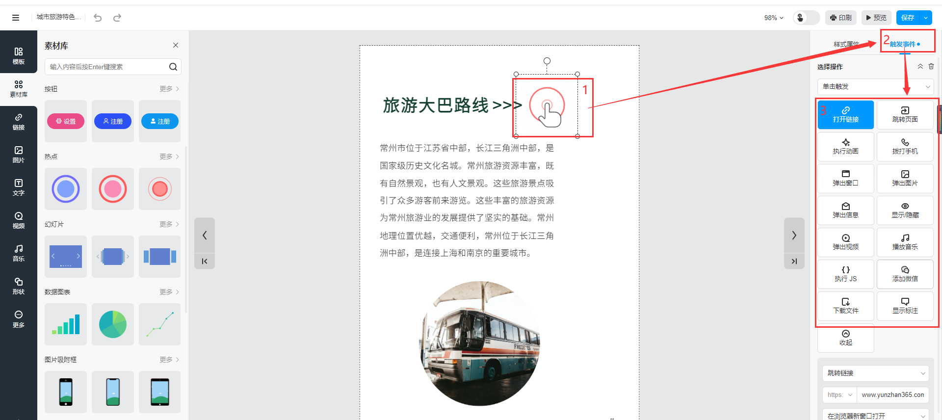 打開(kāi)鏈接:可以設(shè)置自己公司官網(wǎng)鏈接或者購(gòu)買(mǎi)鏈接,只要有效網(wǎng)址都可以,點(diǎn)擊熱點(diǎn)即可跳轉(zhuǎn)