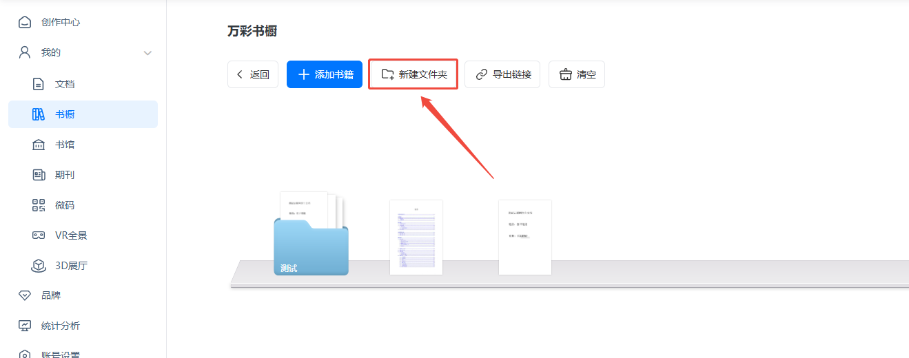 進(jìn)入管理書櫥界面,點(diǎn)擊【新建文件夾】。