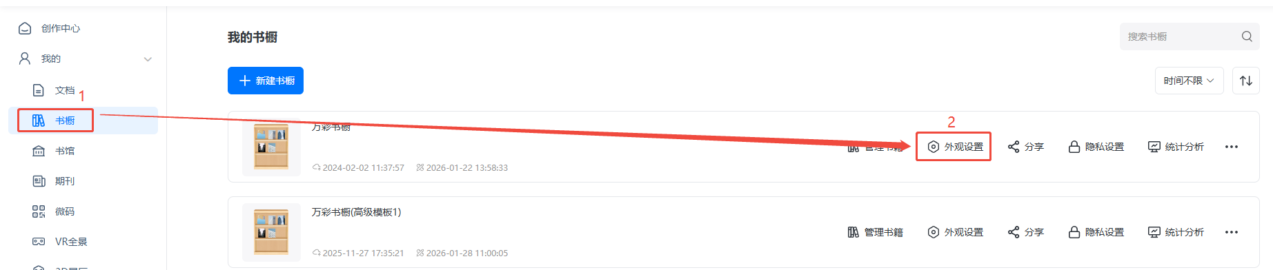 返回【書櫥】,然后點(diǎn)擊【外觀設(shè)置】。