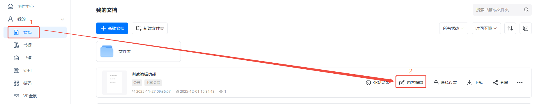 點進(jìn)【文檔】,選擇對應(yīng)電子書,點擊【內(nèi)容編輯】。