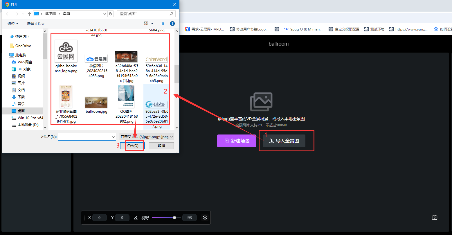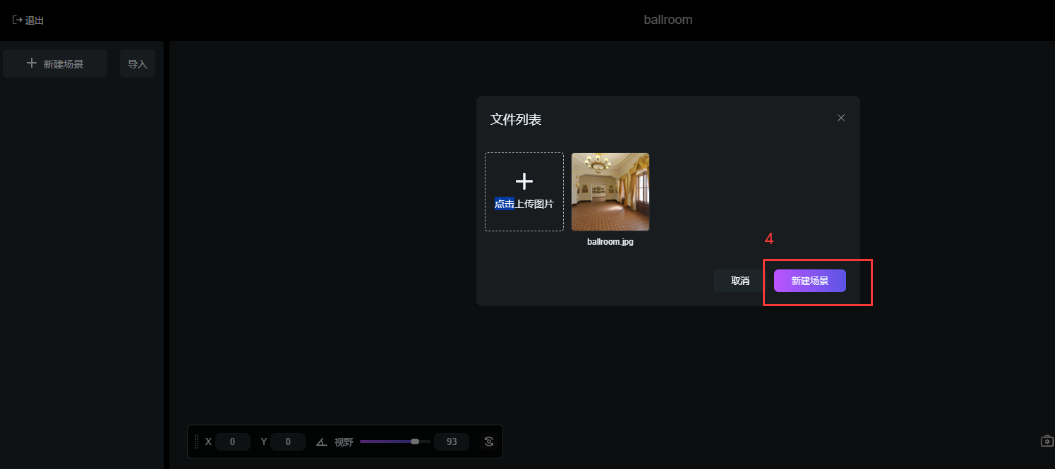 點(diǎn)擊【導(dǎo)入全景圖】,上傳自己本地的全景圖轉(zhuǎn)換成在線的全景空間