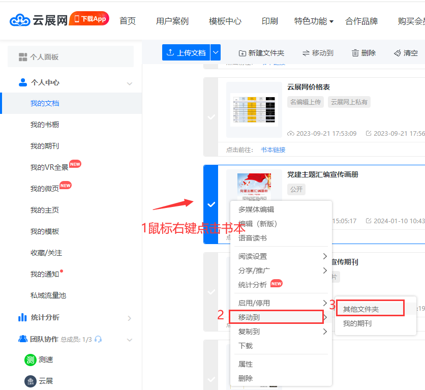 鼠標(biāo)右鍵點擊書本–選擇【移動到】【其他文件】–選中對應(yīng)的文件夾