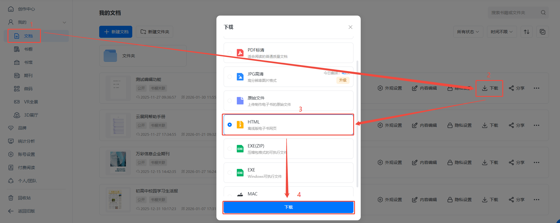 點(diǎn)進(jìn)【文檔】,找到對應(yīng)電子畫冊,點(diǎn)擊【下載】,選擇下載HTML格式。
