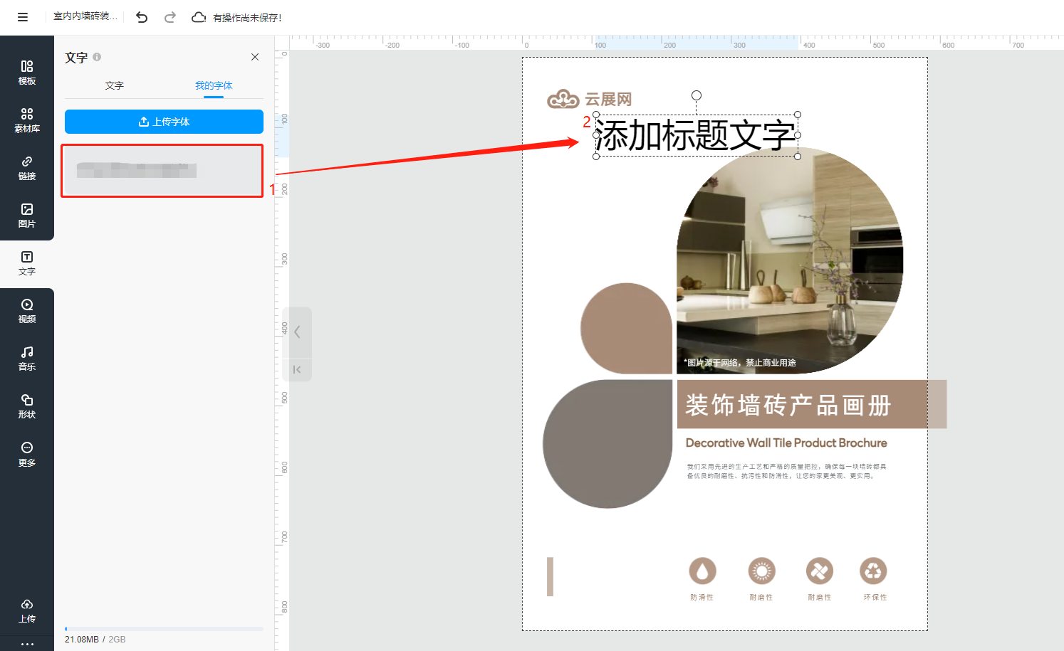 上傳好字體后,點擊一下字體,即可在頁面上編輯文字。
