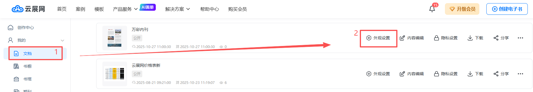 點(diǎn)擊【文檔】,選擇你要設(shè)置流暢模式的電子書,點(diǎn)擊【外觀設(shè)置】打開