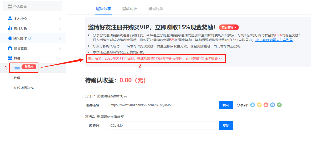 邀請好友注冊云展網(wǎng)抽免廣告次數(shù)(100%中獎),要求使用您自己的邀請鏈接或邀請碼邀請好友注冊。