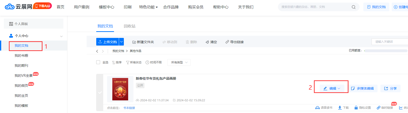 【我的文檔】頁面,點(diǎn)擊【編輯】進(jìn)入編輯頁面