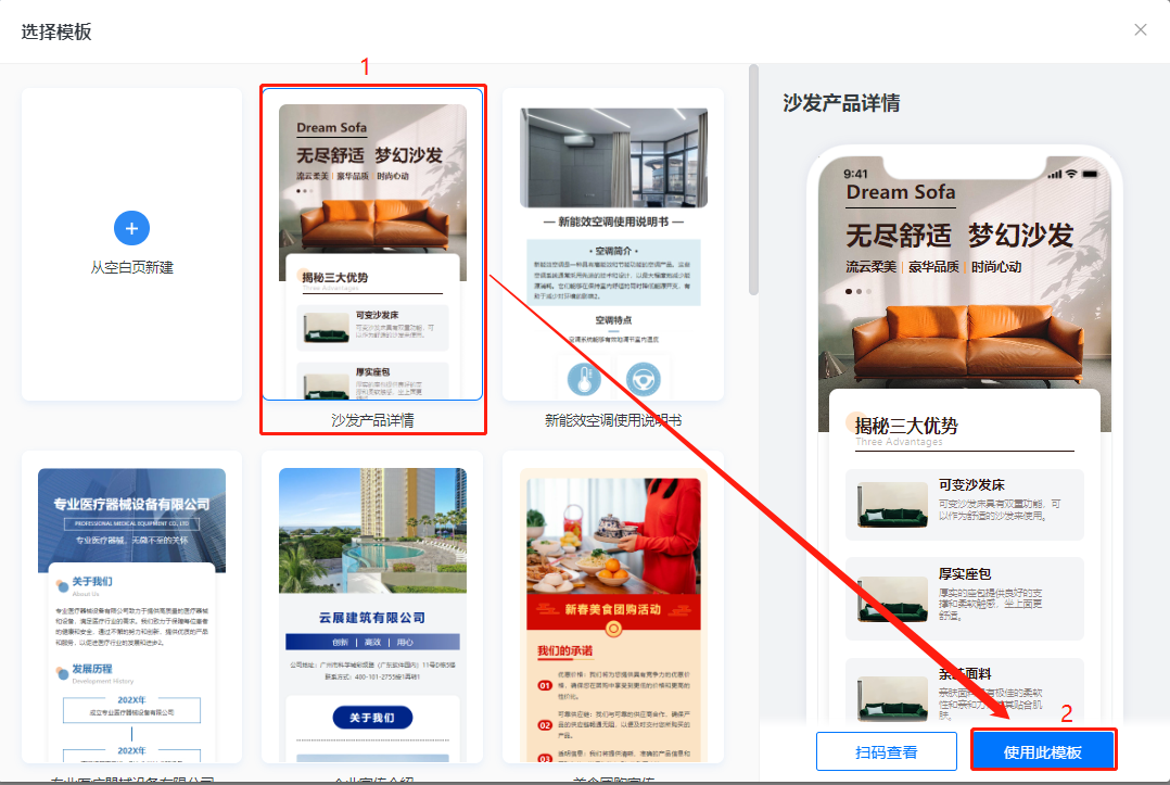 點(diǎn)擊選擇一個模板,點(diǎn)擊右下角【使用此模板】。