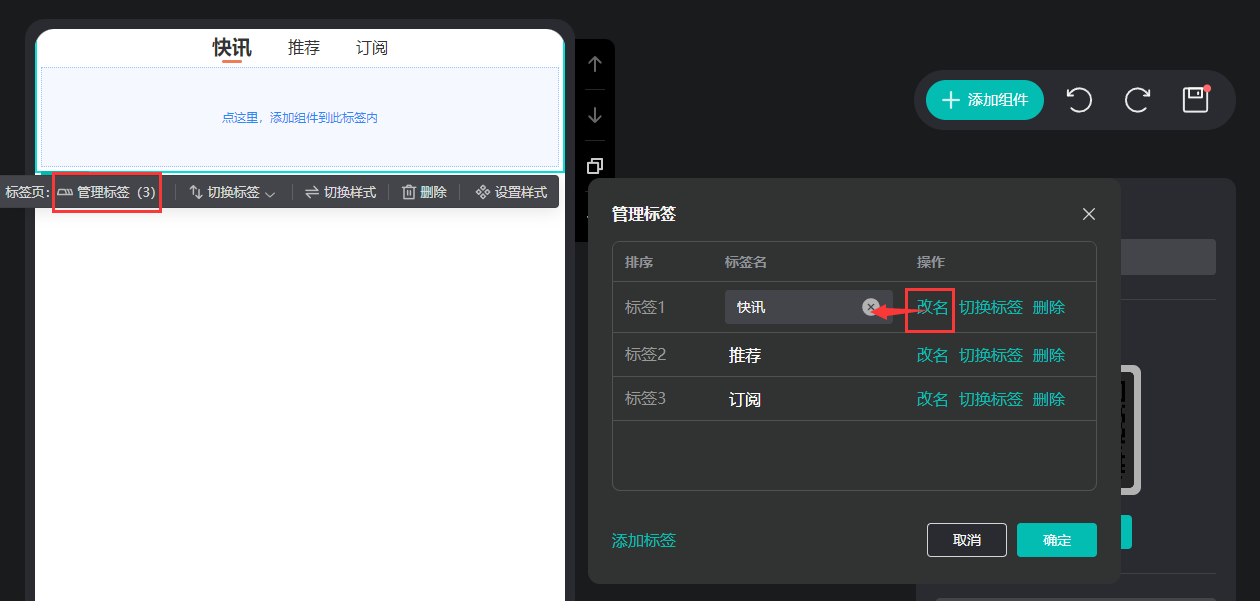 點擊 【管理標簽】,點擊【改名】,編輯標簽名。