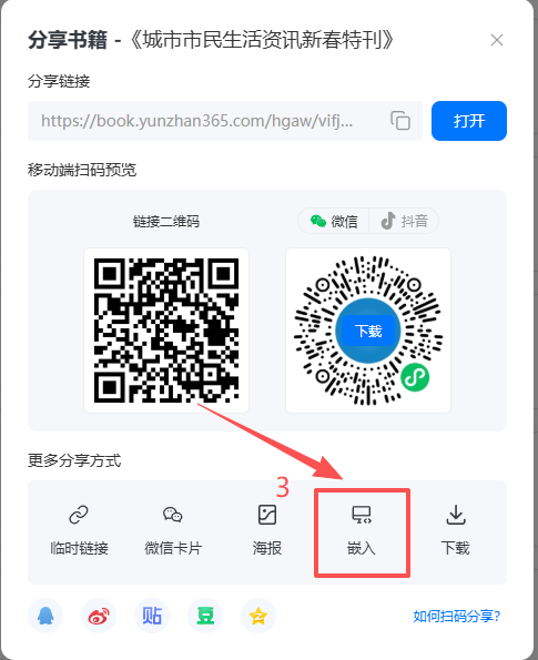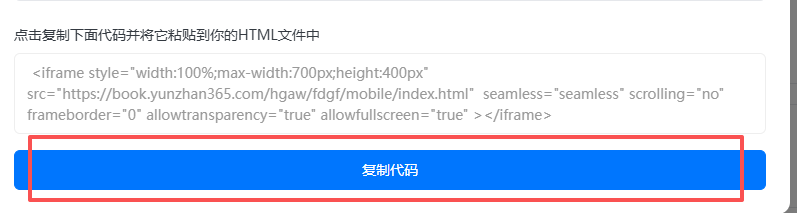 制作完成的電子書可嵌入自己的網(wǎng)站進(jìn)行分享??赏ㄟ^(guò)獲取書籍的嵌入代碼后,交給您單位的網(wǎng)站開發(fā)人員,將其嵌入網(wǎng)站頁(yè)面指定位置,即可實(shí)現(xiàn)內(nèi)嵌展示。