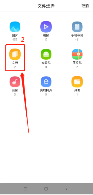 打開(kāi)app點(diǎn)擊【上傳文件】,點(diǎn)擊【文件管理】,選擇【文檔】,即可看到保存的文件